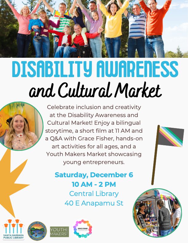 Celebrate inclusion and creativity at the Disability Awareness and Cultural Market! Enjoy a bilingual storytime, a short film at 11 AM and a Q&A with Grace Fisher, hands-on art activities for all ages, and a Youth Makers Market showcasing young entrepreneurs!