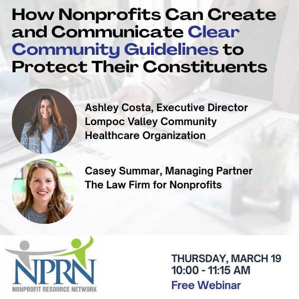 Casey Summar, Managing Partner at The Law Firm for Nonprofits, will explain the rights of nonprofits to lawfully set, communicate, and enforce clear policies and community guidelines.
