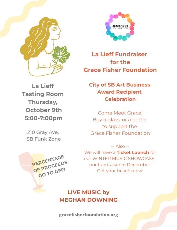 Join us at La Lieff in the SB Funk Zone on Thursday, Oct 9 | 5–7pm for a special evening benefiting the Grace Fisher Foundation