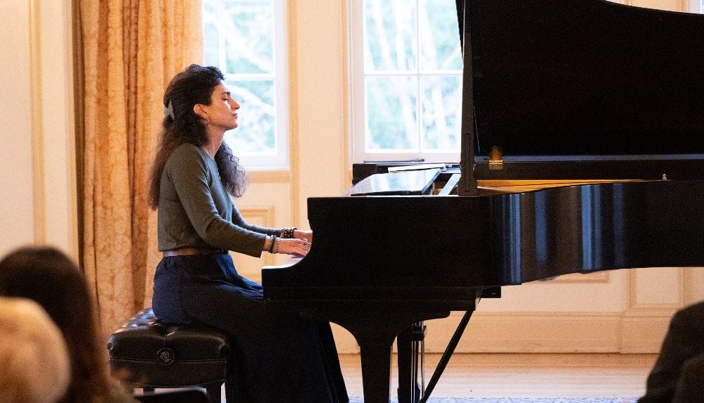 Pianist, composer, and music therapy advocate Dalida Arakelian performed a selection of her uniquely affecting works and discussed her creative process during an intimate gathering at the Music Academy of the West on Thursday, October 23. Hosted by the Scholarship Foundation of Santa Barbara, the event was the first in a new programmatic series titled “From Gift to Greatness,” intended to showcase the talents and achievements of former Foundation recipients.